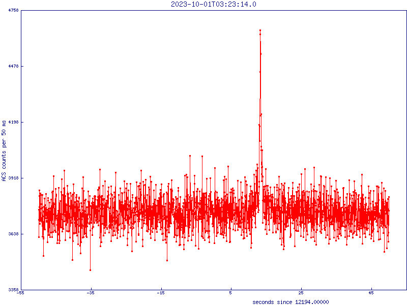 | Solar flare | 2023-10-01 03:23:27.4 | 17 | 823.2 | ~80-950 | 53.6 | PNG, EPS, TXT, FITS | PNG, EPS | 1 | GOES INTEGRAL/SPI-ACS GECAM-B Fermi/GBM | ||